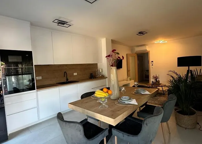 Apartament ma wyposażoną kuchnię z piekarnikiem i zmywarką do naczyń. Międzynarodowe lotnisko Zadar oddalone jest od 1-pokojowego apartamentu o 5 km, a dworzec Bibinje 5 / Trg - bardzo blisko stąd.